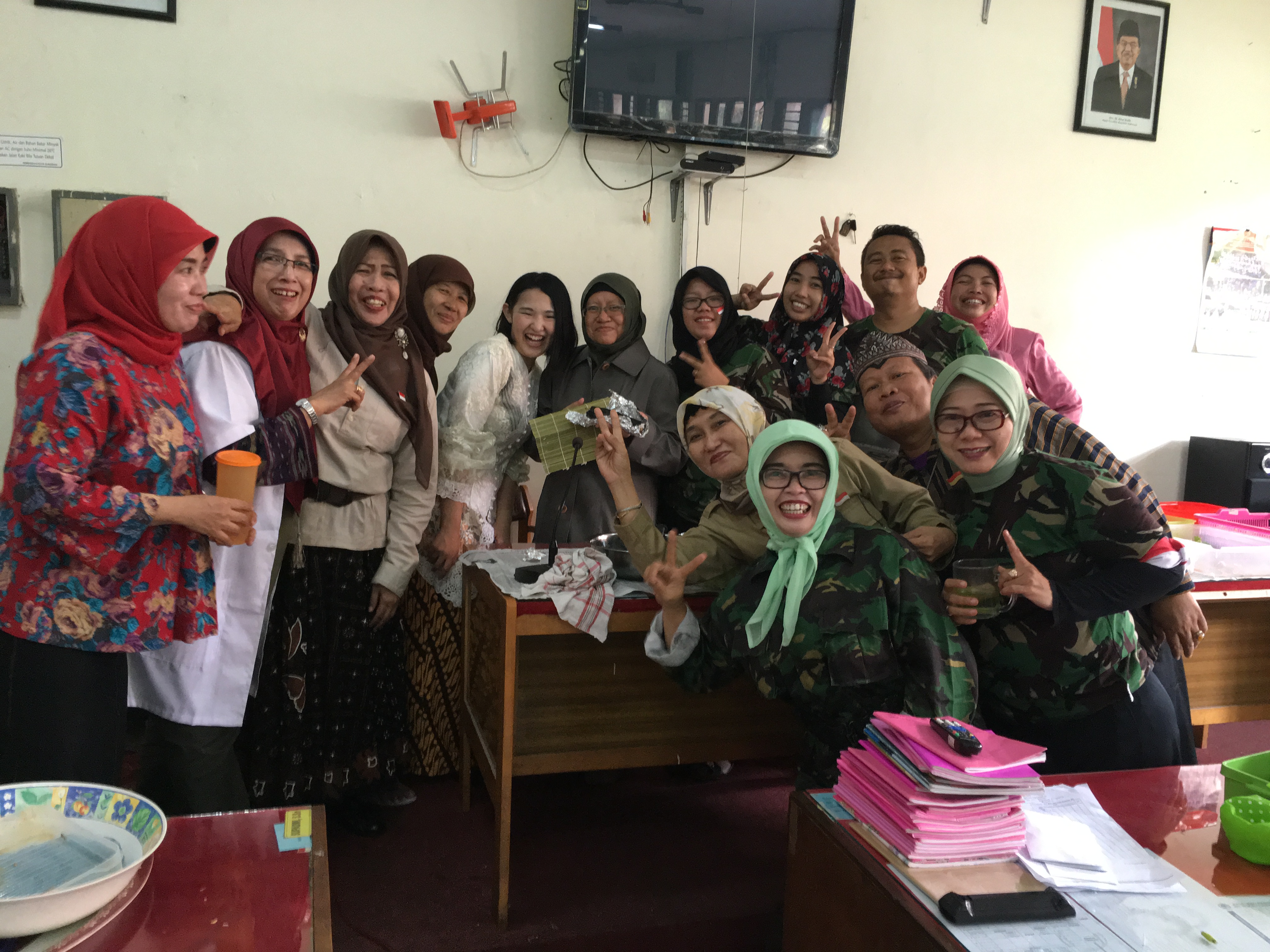 作品説明:派遣先の職員室の先生方と巻きずしを作った時の写真。英雄の日だったのでそれぞれ英雄の格好をしています。先生方は本当に優しく温かく私にとって大きな家族のような存在でした。