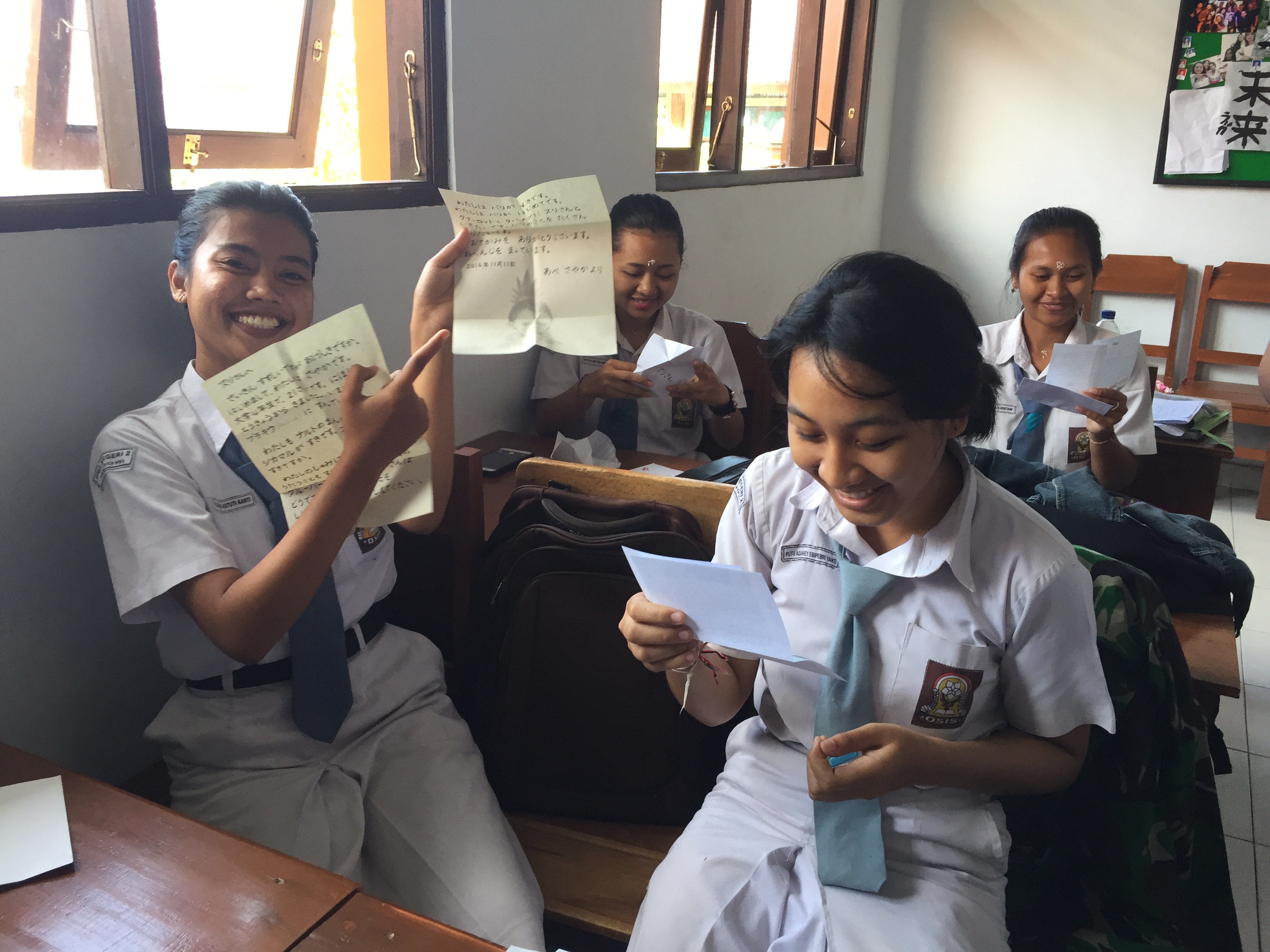 みんなで集まって記念写真的に「ニッコリ!」というのではなく、授業の現場の雰囲気が楽しく伝わってくるものを選びました。この写真は、現地の人と“日本語パートナーズ”が仲良く学びあっている空気がよく伝わってきて、こちらも楽しくなりました。