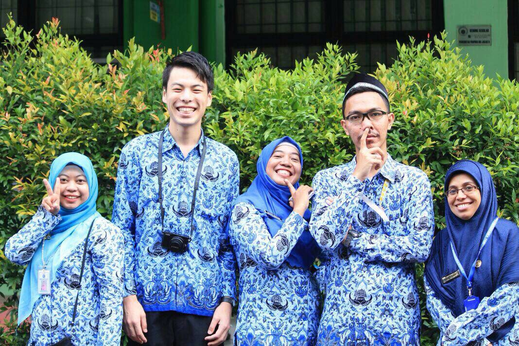 みんなお揃いの鮮やかな民族衣装と緑豊かな背景がマッチしていて、色合いがとても美しいです。マレーシアの卒業式はこんなにカラフルで、みんなで明るく楽しく過ごされているんだと感じさせてくれる素晴らしい写真だと思いました。