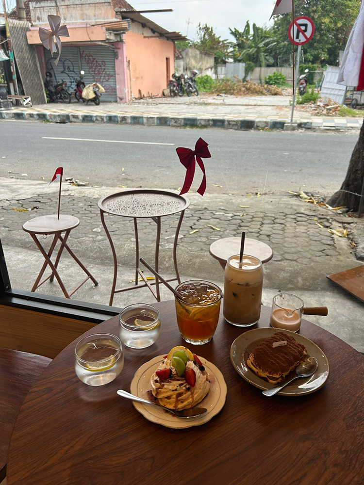 「nongkrong」(ノンクロン)文化に加えて、近年は若者を中心としたカフェブームも到来していると、現地の先生から伺いました。その影響を受けてか、ジョンバン県にもSNS映えしそうなおしゃれカフェがたくさんあります。私も、NP(日本語パートナーズ)仲間と早速nongkrongしてきました。