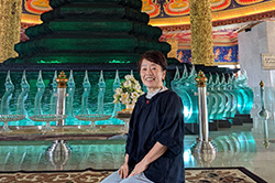 時折お寺にお参りし、タイでの生活が無事に過ごせていることへの感謝をします。仏像に金箔を張り付けるのも、楽しみです。3×6cmぐらいの半紙を半分に折った中に1cm角の金箔が入っています。その半紙を開いて、金箔を仏像の好きな場所に貼りつけます。最初は、金箔を手に持って貼り付けていたので、自分に金箔が張り付きうまくいかないことがありましたが今は大分上手にできるようになりました。このお寺の募金箱のような物に50バーツ以上の寄付をすると、金箔100枚セットがもらえます。