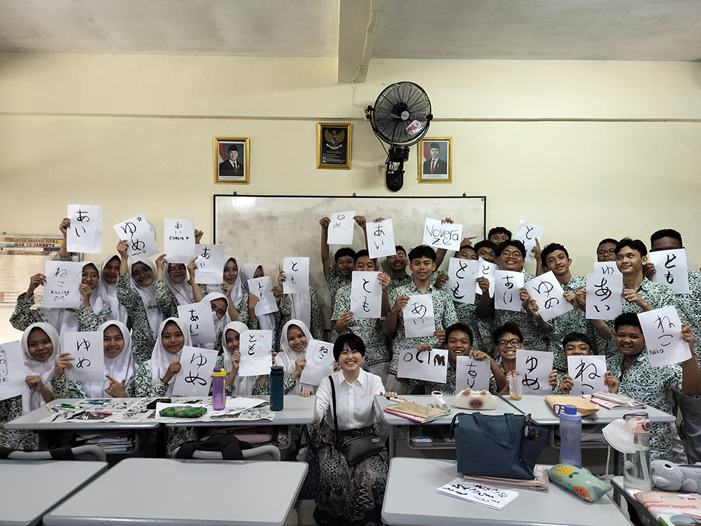 今回の文化紹介は、生徒たちが学習したばかりのひらがなを使いながら、書道という日本文化を体験するということが目的でした。今後、生徒たちが勉強を進めていく中で、好きな言葉や漢字を見つけたら、ぜひそれも筆を使って書いてみてほしいと思います。