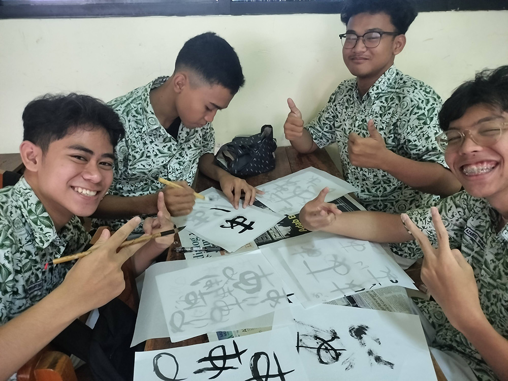 当日、まずCP先生(現地の日本語の先生)が「今日は書道をやります!」と言うと、生徒たちは「わあ!」と声をあげて喜んでくれました。