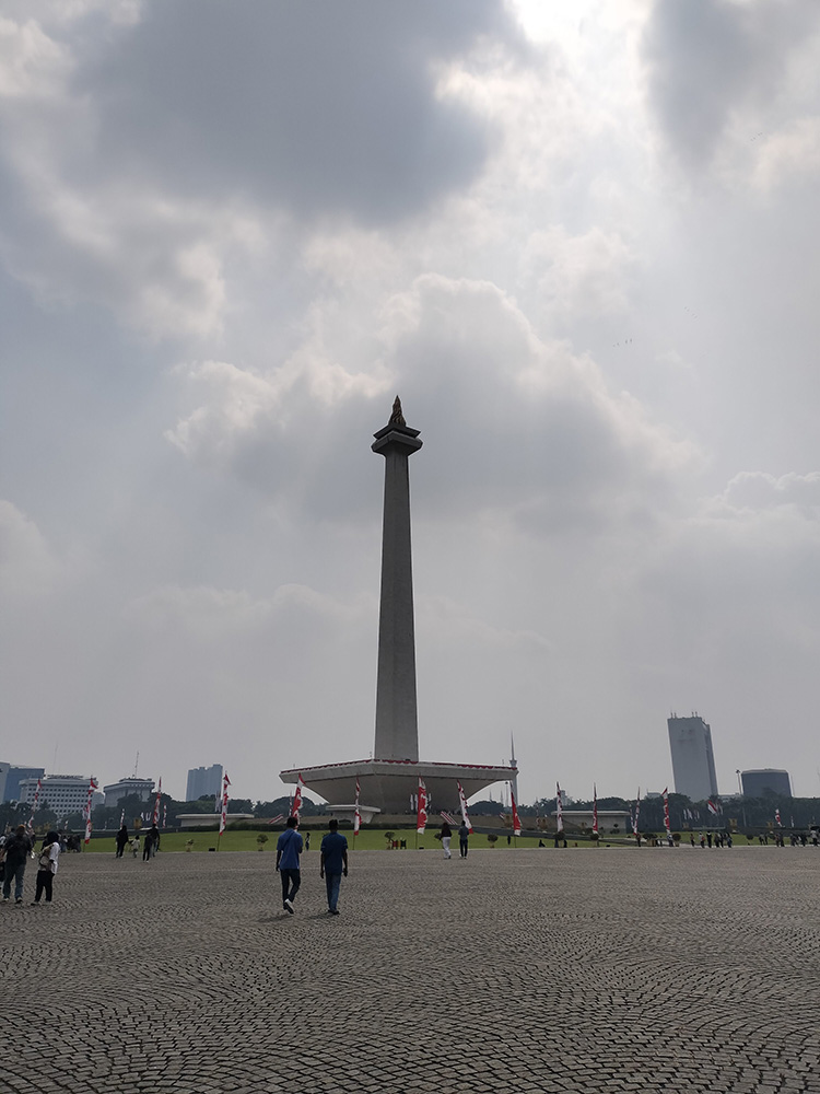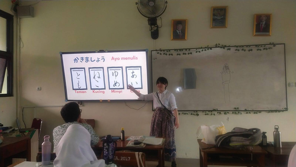 モナスというのは、ジャカルタのムルデカ広場にある独立記念塔のことです。塔の一番上は炎のデザインで、確かにその形は筆先に似ています。私がその言葉を借りて、クラス全体に「書く時の筆はモナスみたいな形にしてね!」と言ったところ、みんなすぐに実践することができました。