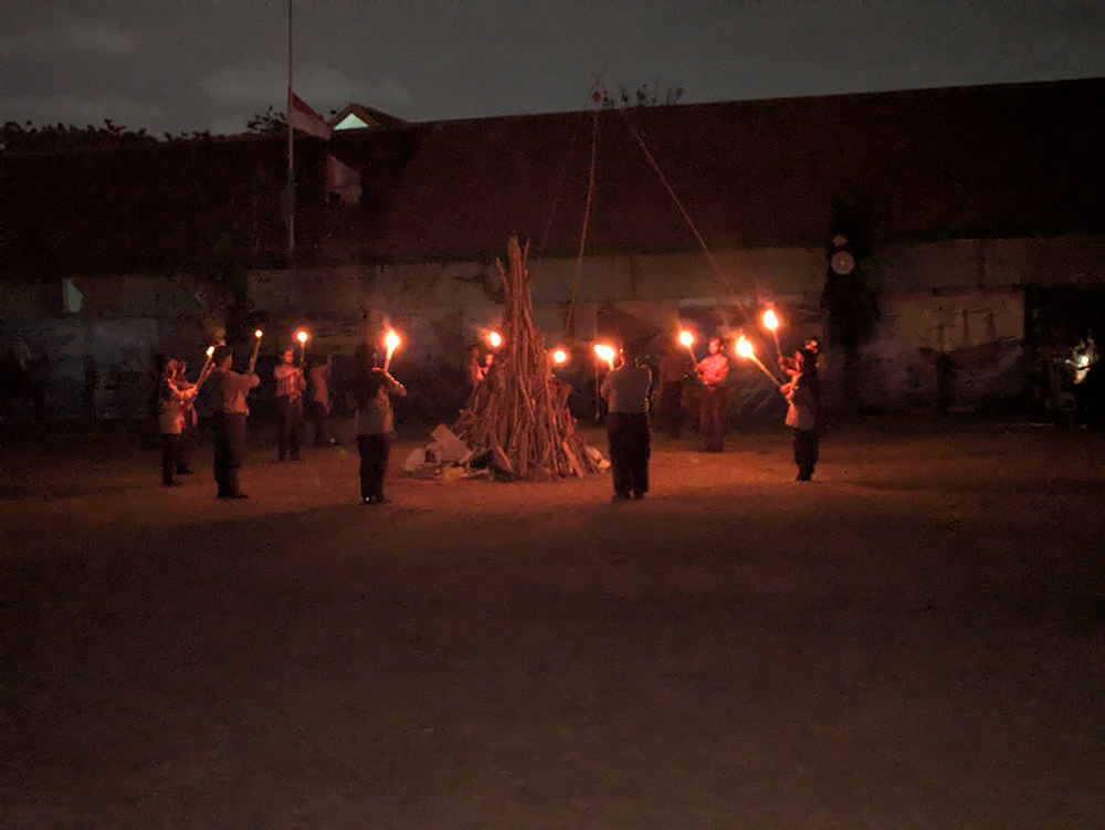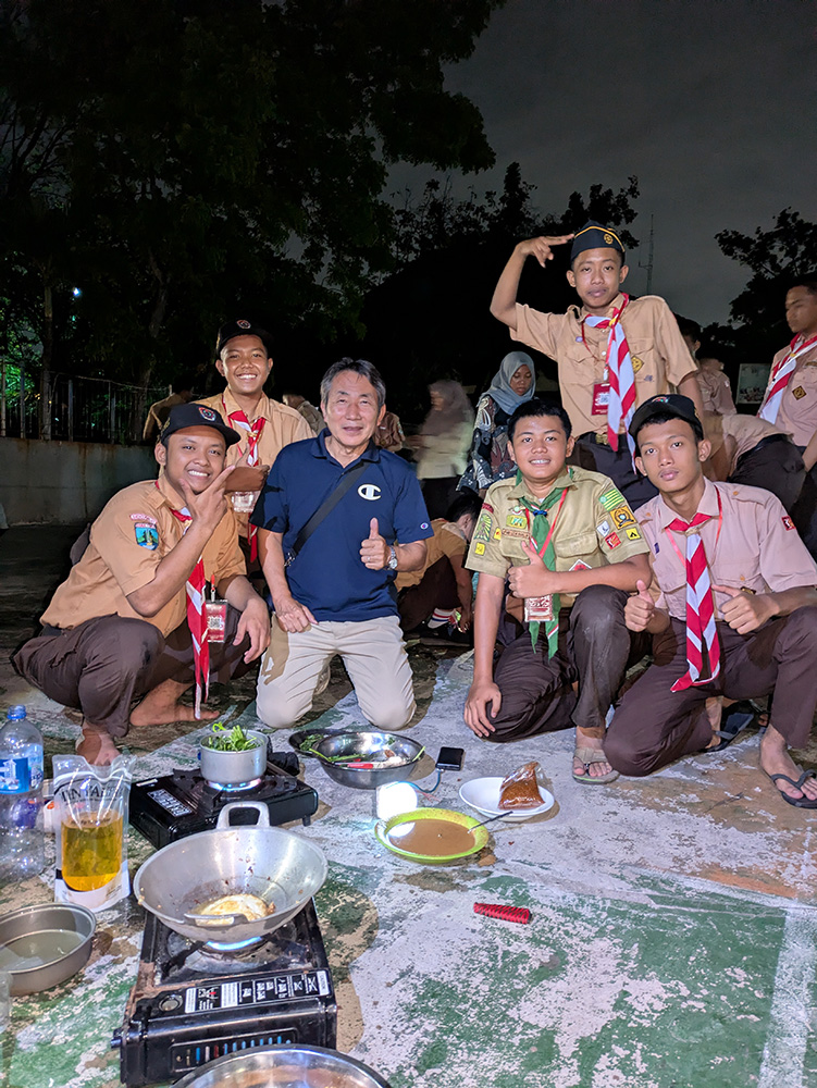 ボーイスカウトクラブが準備した食材を使って食事を作ります。メニューは、インドネシア料理の定番、揚げ物が多いようです。翌朝の朝ご飯は、日本でも定番のカレーを作ります。