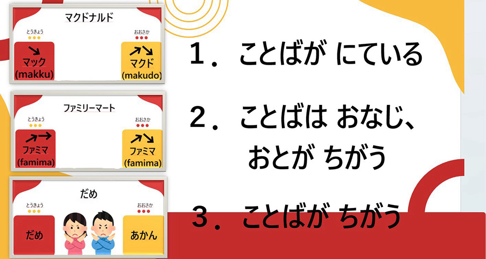 最後に、標準語と比較した大阪弁の特徴を3つに分類しました。