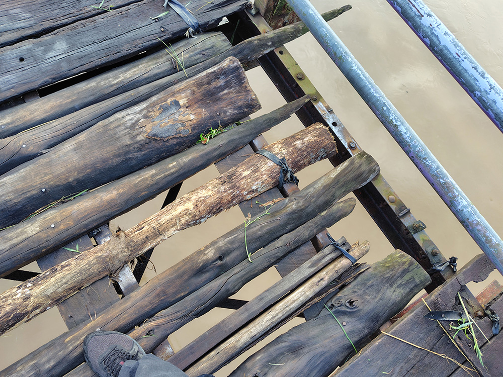 メトロ市南部には、町を隔てる大きな川が流れています。当時、この橋は人々が町を行き来するための大切な通路だったそうです。現在も定期的に修繕が行われているそうですが、木の足場はところどころ老朽化が進んでいました。(私は高いところが苦手なので、少し歩いて引き返しました……)