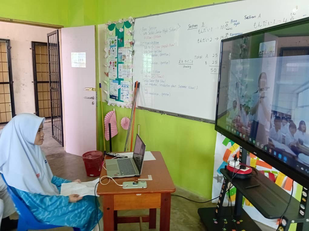 そして9月末には日本とのオンライン交流会も行いました。派遣先校の生徒と私の地元の中学生とで事前に手紙交換をしていたので、その際の自分の文通相手とオンライン上でお話をすることができました。自己紹介と質問を、日本の生徒は英語で、マレーシアの生徒は日本語で行いました。マレーシアの生徒たちは、スクリーンの中に自分の文通相手を見つけるやいなや笑顔を見せていました。