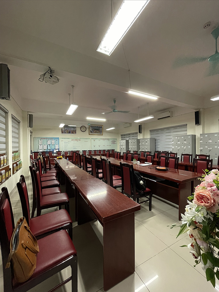 派遣先校に着いた後は「先生の部屋」という場所に行きます。この部屋は先生の待機室のような場所です。日本の職員室のように先生一人ひとりのデスクはなく、大きなテーブルの周りに椅子が並んでいます。時間によってはほかの科目を担当する先生もいて「日本語の先生?」と気さくに話しかけてくださり、和やかな雰囲気です。ここで身だしなみを整え、授業で使う教科書類をカバンから出して教室に向かいます。(授業開始ギリギリに到着した日は、直接教室に行くこともあります。)