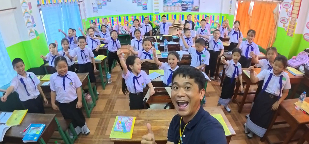 私はラオス文字で書いた名札を付けて毎日を送っています。みんな「ジェンゴ(私の名前)おはようございます」や「センゴおはよう」と言ってくれます。現在ラオスに派遣されて約2か月が経過し3か月目がスタートしています。着任当初は緊張の毎日でドキドキしていましたが、少しずつほど良い緊張感で学校生活を楽しんでいます。