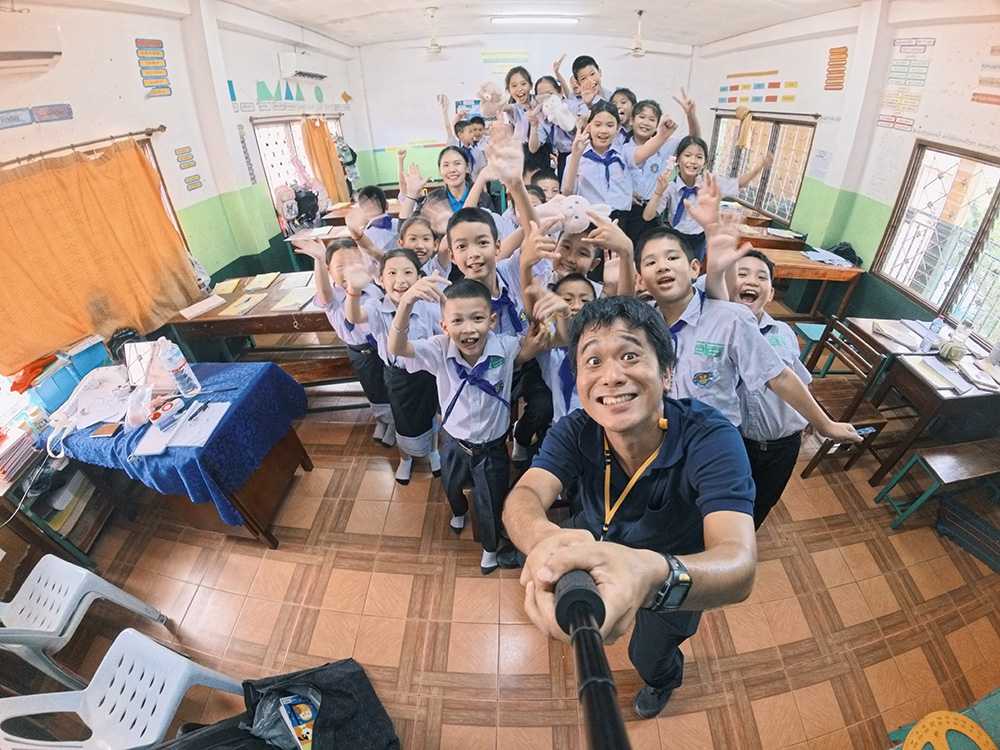 こちらの学校は規模が大きいです。幼稚園・小学校・中学校・高校が同じ敷地内に有りとても賑やかです。授業は、午前中に小学5年生クラス、午後は小学4年生クラスに参加しています。本当に生徒たちが元気で、日本語の授業に対しての熱量が凄いので、私自身も気合MAXで授業に挑んでいます。