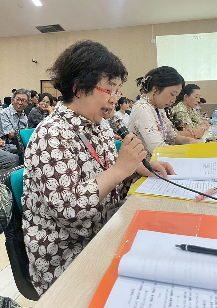 チーム対抗戦では、応援するチームが正解すると会場からは大きな拍手と声援が起こり、間違うと大きなため息が聞こえてきました。会場のクーラーが効いていないかと思われるほど、会場は熱気に包まれていました。私たちNPも会場の熱気にのぼせそうになりながらも間違えないように、緊張しながら楽しむことができました。日本文化に興味を持って日本語を学習している学生の熱量を実感し、とてもうれしく思いました。