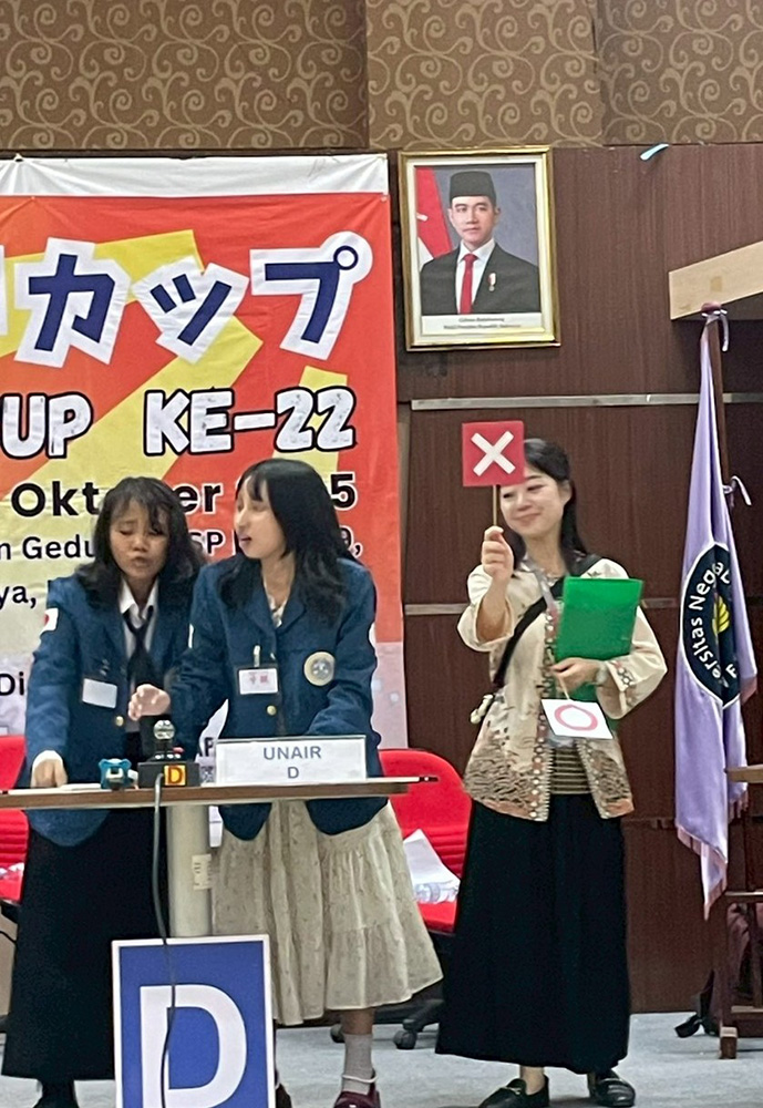 10月4日スラバヤ国立大学にて、在スラバヤ日本国総領事館、国際交流基金、IMCセンター(スラバヤ市内にある日本語学校)の共催で、第22回漢字カップが開催されました。このイベントに、東ジャワ州に派遣されている日本語パートナーズ(NP)からボランティアとして11人が参加しました。司会2名、審査員4名、問題読みあげ役5名に役割を分担して、大会運営に協力しました。