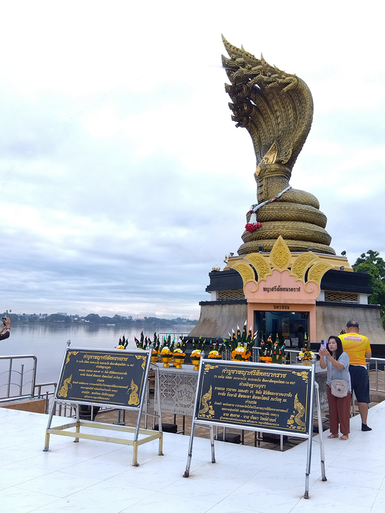 日の出を見た後はナコーンパノム市内のシンボル「パヤーシーサッタナカラート(インド神話の蛇神ナーガを模した像)」でお参りをしました。メコン川に沿ってサイクリングロードを14km!対岸のラオスを眺めながら自宅までサイクリング。景色は最高で、ナコーンパノムの雰囲気はのんびりしていてとても素敵でした。