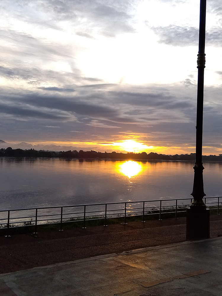 翌朝、日の出を見ることができました。手前はタイ王国、川向こうはラオス人民民主共和国です。