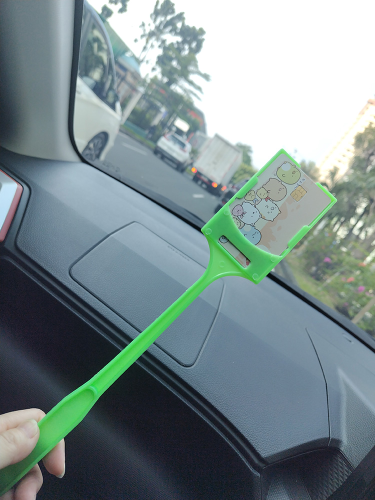 インドネシアにも日本と同じような交通系ICカードがあり、電車やバスへの乗車、コンビニでの支払い等をすることができます。駐車場や高速道路の通行料金の支払いにも使うことができるのですが、車と支払機が離れてしまっている時にこのホルダーが活躍します。