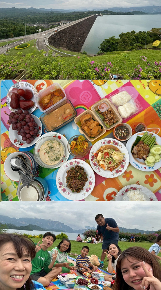 スラーターニーに着くと、CP先生のご家族が笑顔で迎えてくださり、お母様の手料理を持ってダムの湖畔でピクニック!自然の中でみんなで食べるごはんは、何倍もおいしく感じました。