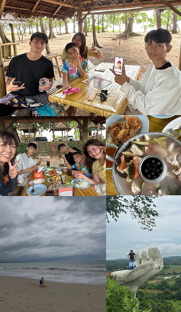 3日目はパンガー県のバーンサック海岸へ。途中で洞窟の中のお寺を訪ね、魚に餌をあげたり、美しい滝を見たり……。どこを見ても綺麗で、思わず「先生はこんな素敵な場所で育ったんですね」と何度も言っていました。海辺ではおいしい料理をいただき、私好みのユニークな公園にも連れて行ってもらい、笑顔の絶えない1日でした。