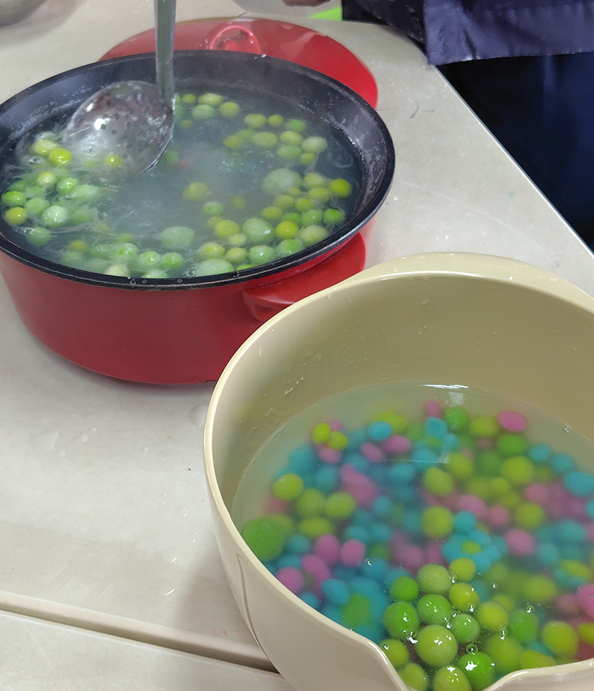 もう一つ、タイの定番おやつである「ブアローイ」は、高校3年生の生徒たちが教えてくれ、一緒に作りました。温かくて甘いココナッツミルクにカラフルなお団子を浮かべます。生徒たちとワイワイ言いながら作ったブアローイは最高の味でした!