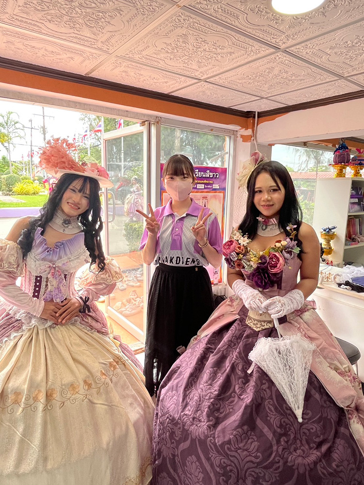 パレードは、日本でいう入場行進のようなものですが、まるでテーマパークにいるかのような華やかさと美しさがありました。王族を模した豪華なドレスに身を包む生徒、タイの神話に登場する妖精のコスチュームを着て舞う生徒、華やかな衣装と派手なメイクで飾られた行列が、学校のあちこちを練り歩きます。その光景はまさに圧巻で、目の前の世界が一瞬でおとぎ話の舞台に変わったような気分になりました。