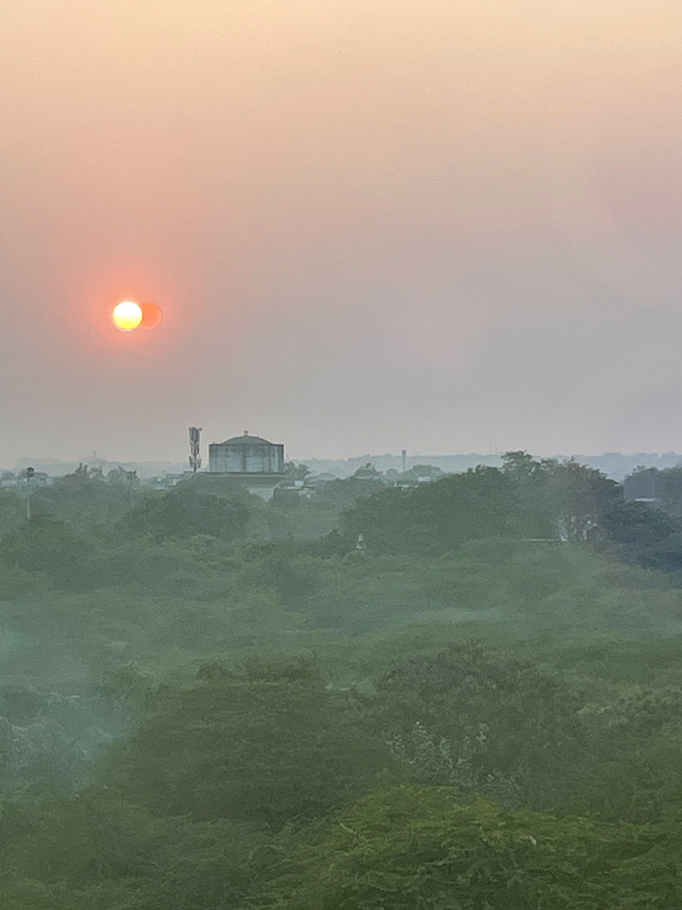 私の住むデリー首都圏では、11月に入ると一気に大気汚染が進みます。特に朝方は、幻想的な靄のような景色ですが、マスクは欠かせません。