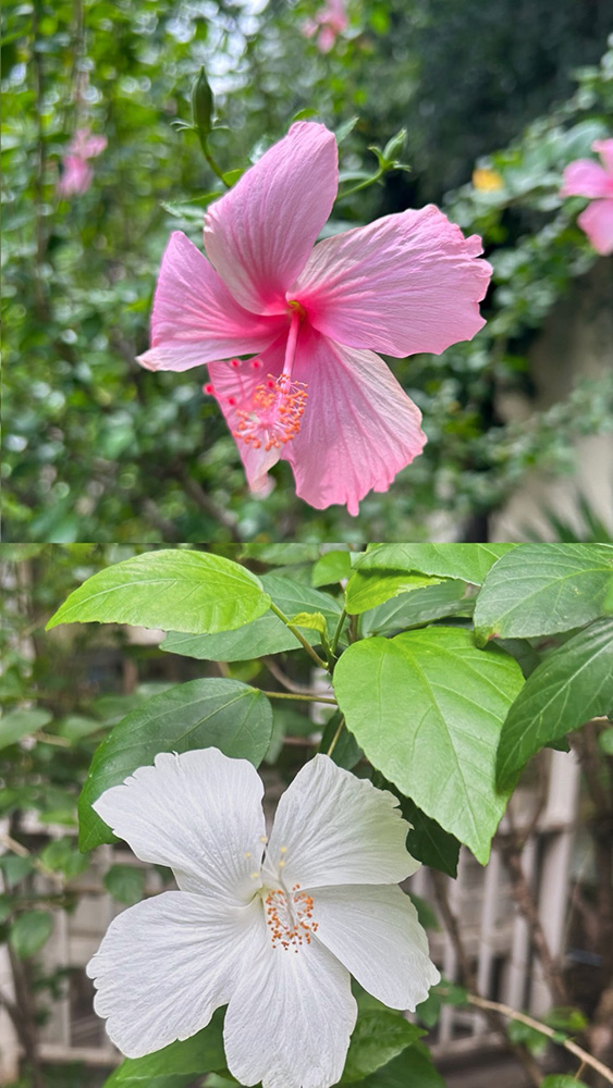 ハイビスカスもあちこちに咲いています。派遣先校の先生から「白いハイビスカスは珍しいんですよ」と教えてもらってからは、見つけるたびにちょっと得した気分になります。
