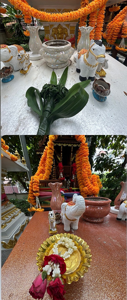 派遣先校には仏さまがお祀りされている場所があり、そこにはマーライ(タイの花輪)やバイトゥーイ(パンダンリーフ)で作られた花飾りが時折供えられていて、見ると自然と心が落ち着きます。