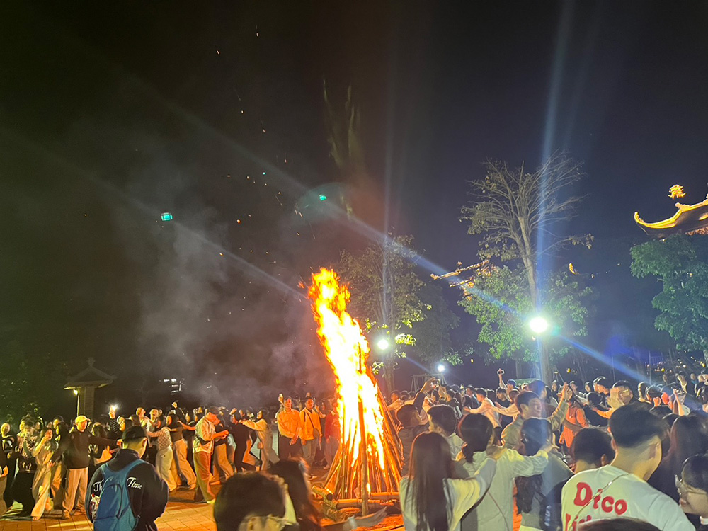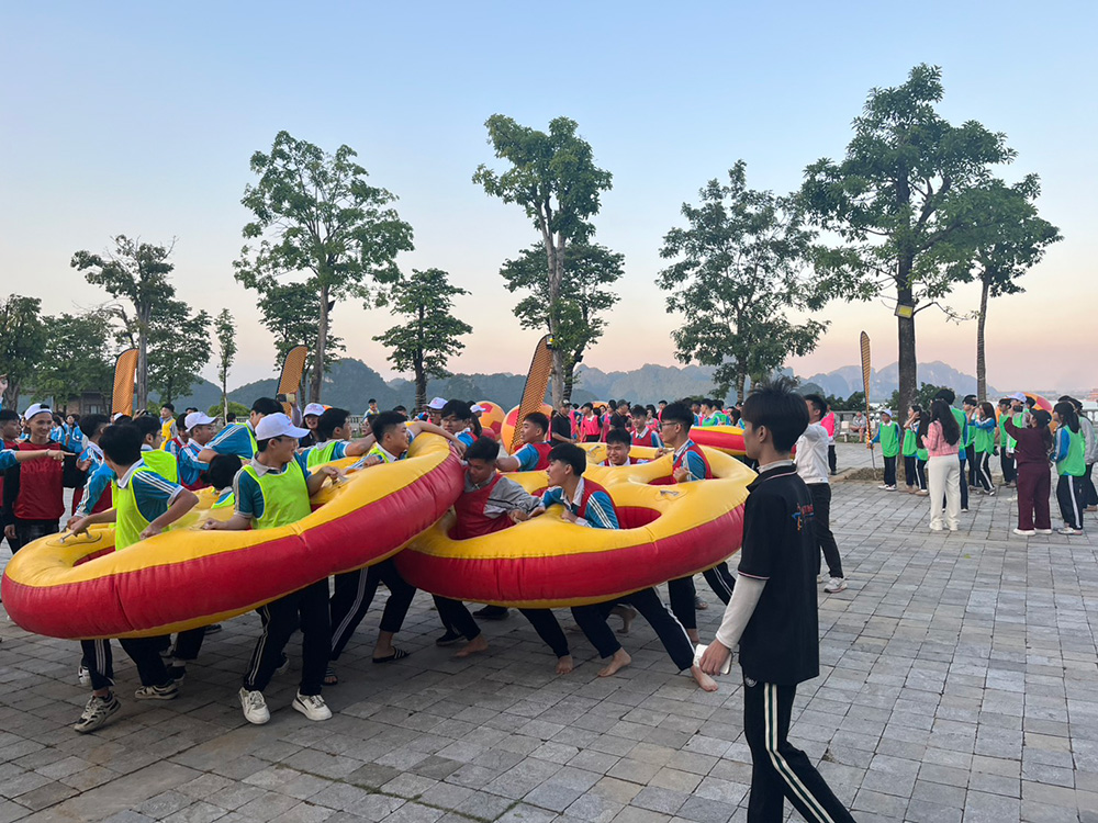 その後はハナム省へ移動し、クラス対抗のゲームやアクティビティに挑戦。生徒たちは声を掛け合い、協力しながら真剣に取り組む姿が印象的でした。夕食後はいよいよキャンプファイヤー。肌寒い夜でしたが、焚火を囲んで歌い、踊り、誕生日を迎えた先生をクラス全員で祝う等、温かく賑やかな時間が流れました。受験と卒業を間近に控えた生徒たちが、今この瞬間を惜しむように全力で楽しむ姿には、まさに青春のきらめきがあふれていました。