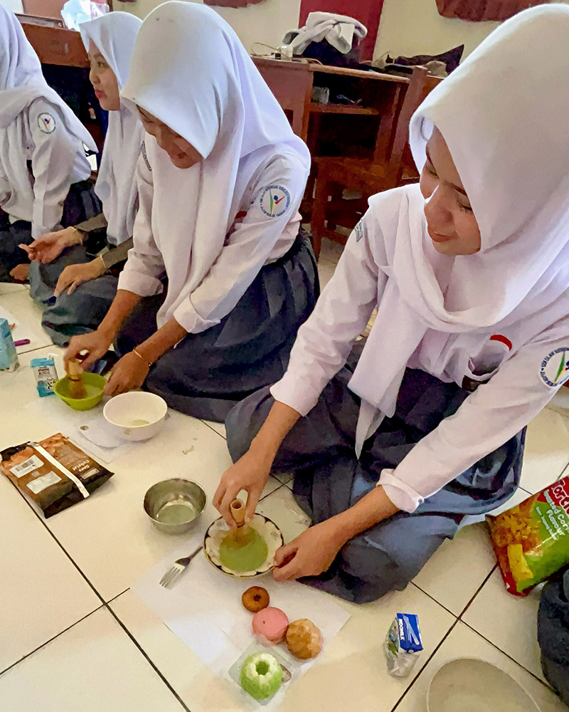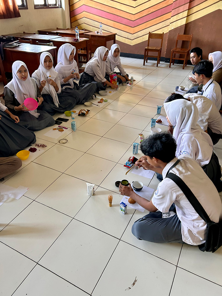 Salam kenal!(はじめまして!)インドネシア・スカブミ県に派遣中のまひです。今回は、11月に行った茶道とおにぎり作りの活動をご紹介します。