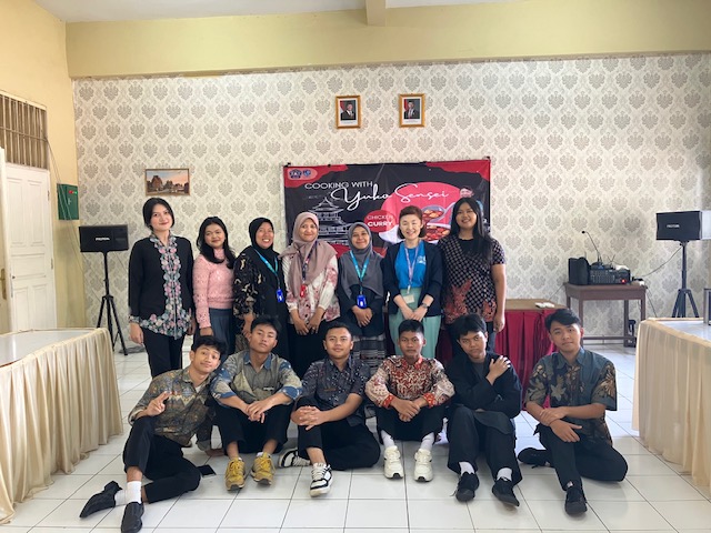 聞くと子供の頃から台所に入って料理を手伝っていたとのこと。料理好きの原点を発見。初体験で生徒たちは目がキラキラ。分担作業(調理班、テーブルセッティング、洗い班)で進み、全員が力を合わせて料理完成。先生たちにも試食していただき、カレーの感想は……全員から「Enak sekali エナッ スカリ」(インドネシア語)や「Raosラオス」(スンダ語)、両方意味:「とても美味しい」と言ってもらえました。万国共通、美味しい食べ物は人を笑顔にしますね。引き続き生徒たちと楽しい活動をしたいと思います。