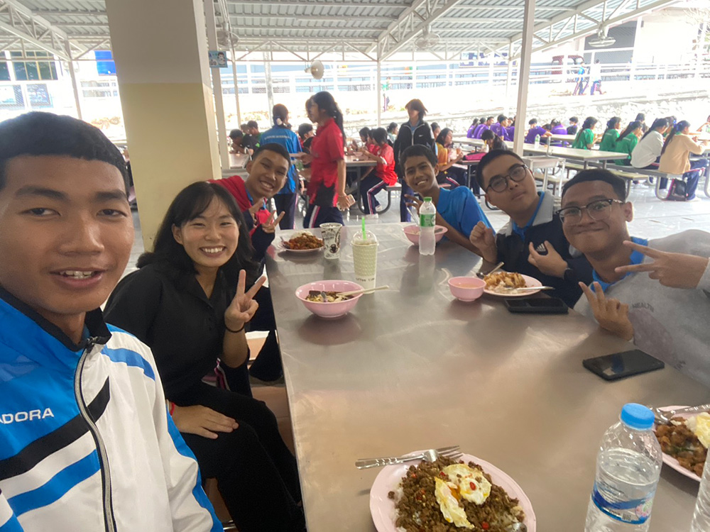 私の派遣先校は全校生徒約3,000人の中高一貫校で、日本語を専門に学んでいるのは高校1~3年生のおよそ120人。毎日、日替わりで生徒と一緒にお昼ごはんを食べています。今月からはM4(高校1年生)の生徒とも食堂でご飯を食べ始め、ますます楽しく、賑やかなランチタイムになりました。