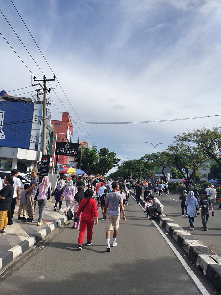 インドネシアの各都市では毎週日曜日に「カーフリーデー」が実施されています。この日は普段車の往来が多い大通りが、午前中の3時間程度歩行者天国になります。