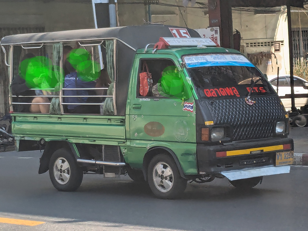 買い物やお出かけには、ミニバス(軽トラの荷台を改造した10人乗りのもの)を利用します。ある日、リュックを背負ってる私にタイ人の女性が「どこに行くの」と話しかけてくれて、片言のタイ語と英語でちょっとしたおしゃべり。降りる時には、市場での買い物の帰りだった彼女からミカンを2ついただいて。ミニバスで隣り合わせたというだけの出会いでも大事にして好意を示してくれるタイ人のフレンドリーな対応にとても心が温かくなりました。