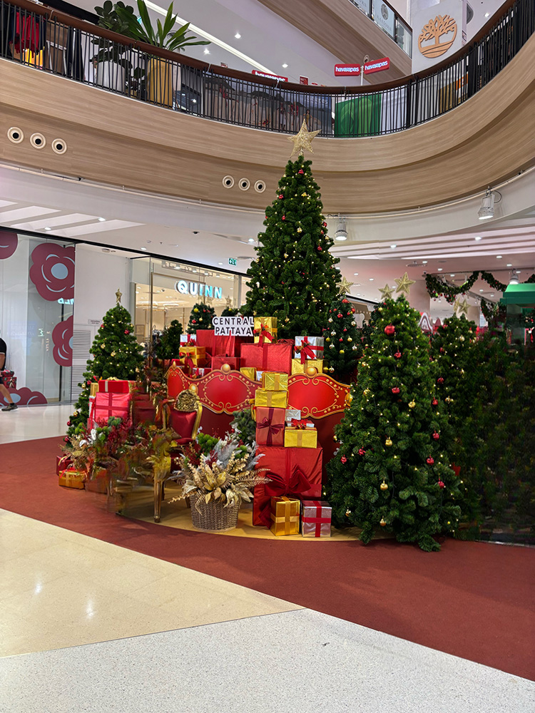 12月に入ると私の派遣先に近いパタヤのショッピングセンターはクリスマスデコレーションが見られるようになりました。デパートでは12月27日でもサンタが行進していました。タイではMerry X‘mas & A Happy New Yearということで、1月になってもクリスマスデコレーションはそのままです。