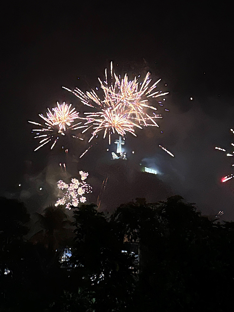 大晦日にトラジャへ移動し、人生初のチキンの有名チェーン店で年越しハンバーガーを食べました。人々は路上で花火を買い求めスタンバイ。フライングもあります。新年まで1時間を切ると辺り一面で花火が打ち上がり爆音が鳴り響きます。翌日の日の出に向け就寝したいのをグッとこらえ、カウントダウンは廊下から空いっぱいの花火を楽しみながら2026年を良い年にしようと誓いました!