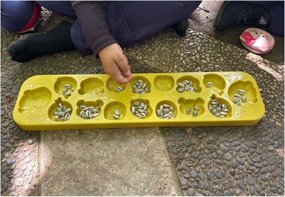 「Congklak(チョンクラック)」というボードゲームを教えてもらいました。