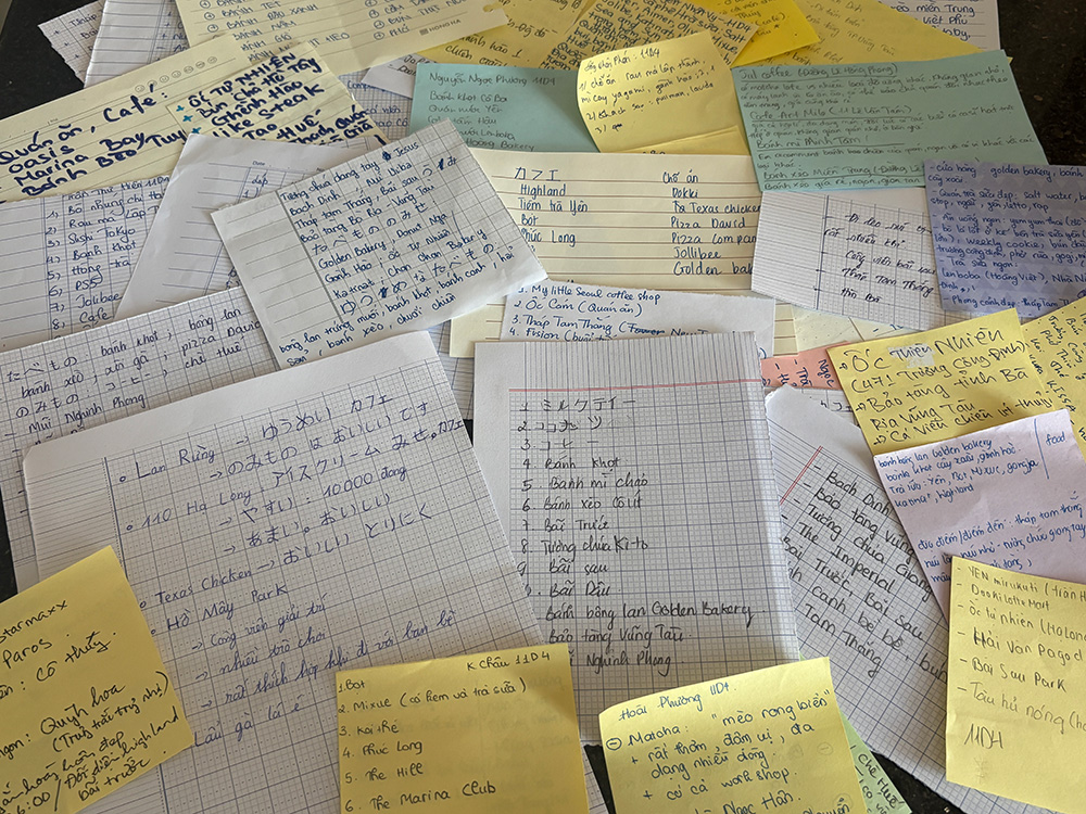 カッコつけて「日本語でもベトナム語でもOKです」と言ったものの、ベトナム語を勉強中の私には、手書きのメモはハードルが高かった!でも、勉強になったぁ。