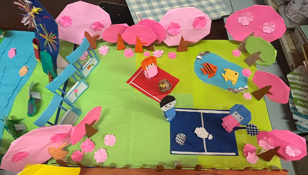 コンテスト前、日本語の教室からソーラン節を一生懸命練習するみんなの掛け声と足音が聞こえました。職員室では折り紙ストーリーテリングコンテストに参加する生徒と、朗読コンテストに参加する生徒が毎日遅くまで練習をしていました。私は主に発音指導として、折り紙ストーリーテリングと朗読の練習に参加していました。生徒のみんなは「ここはどうやって発音しますか?」「どこか直すところはありますか?」と質問してくれます。