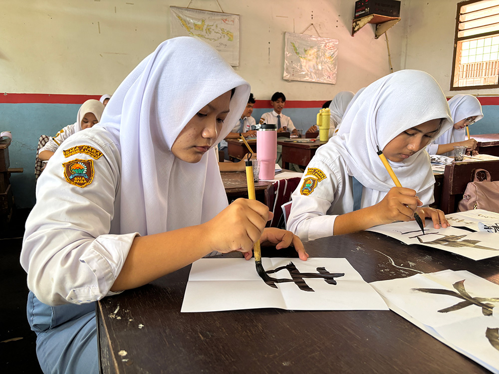 よくありがちなパターンとして、字を細く書いてしまうことがありました。何度も「Coba tulis tebal lebih baik!!(太く書くことに挑戦してみて!)」と声をかけていたのが印象に残っています。