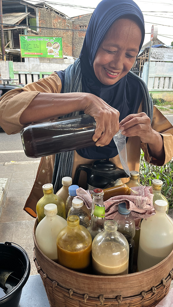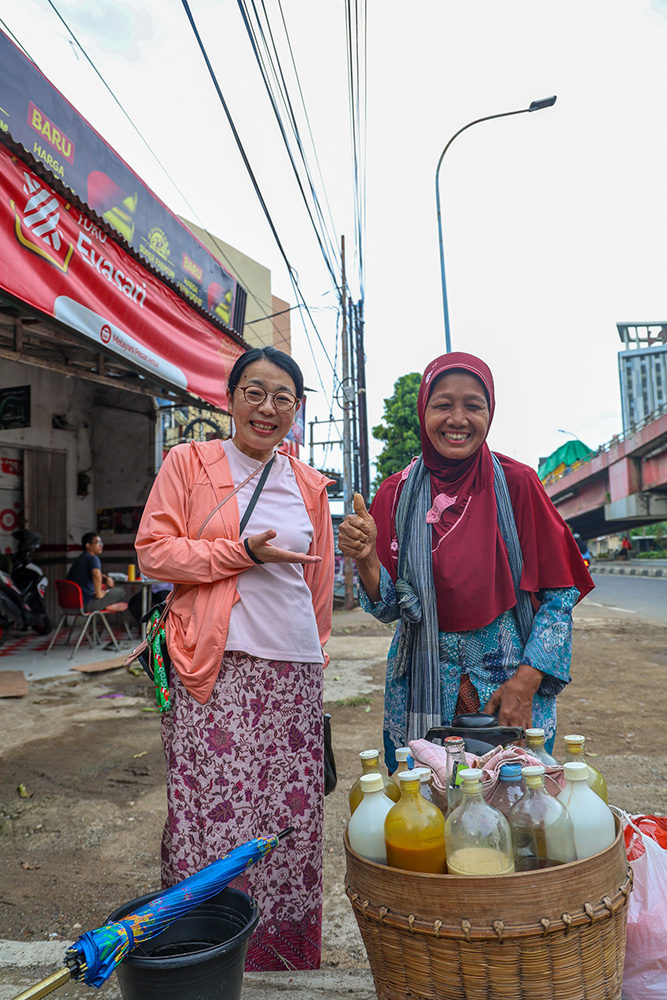ジャムウとは、インドネシアで古くから受け継がれてきた伝統的なハーブ飲料で、健康維持や美容のために親しまれてきたものです。私が飲んでいるのは、お店の方が毎日手作りして瓶に詰めて売り歩いている“生薬ジャムウ”。素朴で優しい味がすっかり気に入ってしまいました。