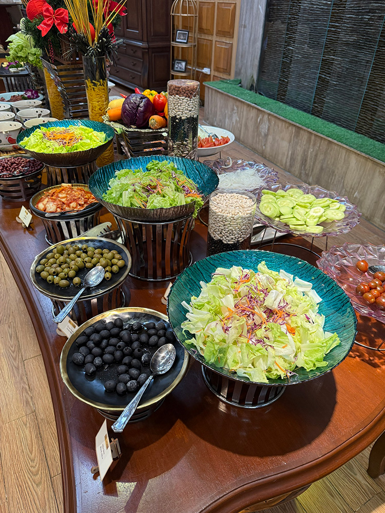 ホテルの朝食ビュッフェの野菜も、輝いています。偶然話したベジタリアンのインドの方が「以前、上高地へ行って、今はダラット旅行中」と言っていました。ベジタリアンが集まるのも納得の野菜でした……。