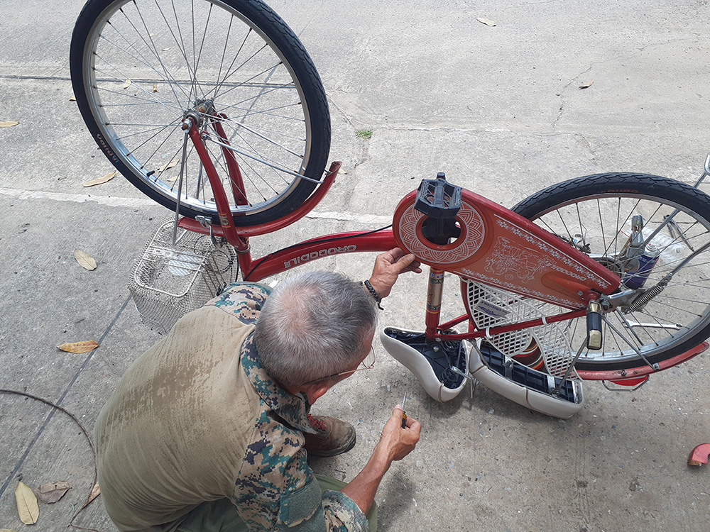 コーンケーンにはバスもソンテウ(乗り合いバス)もありますが、時間通りに来るシティバスは1日5本程度(ルートによる)しかありません。ソンテウは11バーツ(約55円)で安いのですが、いつ来るかわからないのが玉にきずです。やはり頼れる相棒は自転車で、どこに行くにも自転車です。大きな道路でも信号があまりないので、慣れるまでは「あっちを見てこっちを見て」を繰り返しながら、やっとの思いで横断する始末です。犬でも上手く渡っているのに。しかし、横断のコツをつかんでからは心軽やかに自転車に乗っています。