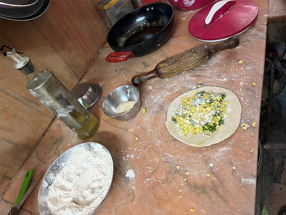 最後に、私にさまざまなインド料理を教えてくれた友人宅の台所。写真は、先程紹介したゴビ・パラタを作っているところです。
