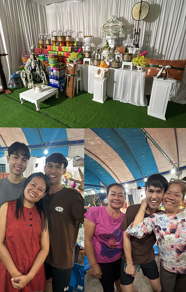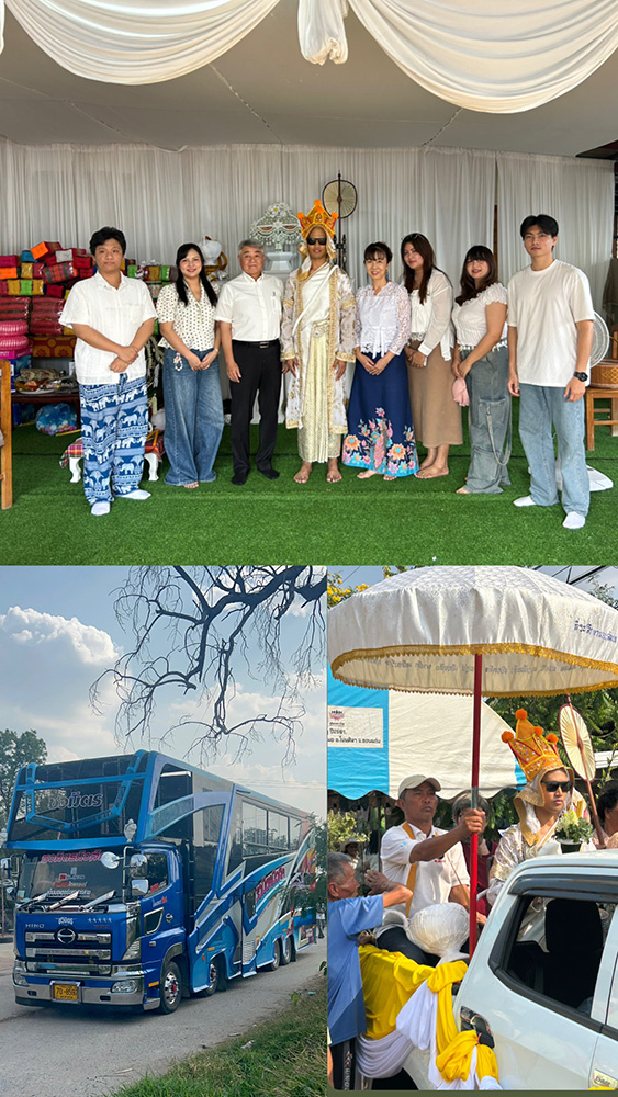 派遣先校には7名の日本語教師がいますが、そのうちの1人であるオーム先生が出家されることになり、先生の故郷コーンケーンへ向かいました。タイでは、息子が出家し仏門に入ることで家族に大きな功徳がもたらされると考えられており、出家式は人生の中でも特に大切な儀式の一つです。先生の運転で約7時間かけて到着し、初日はご自宅へ温かく迎えていただきました。