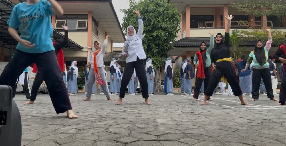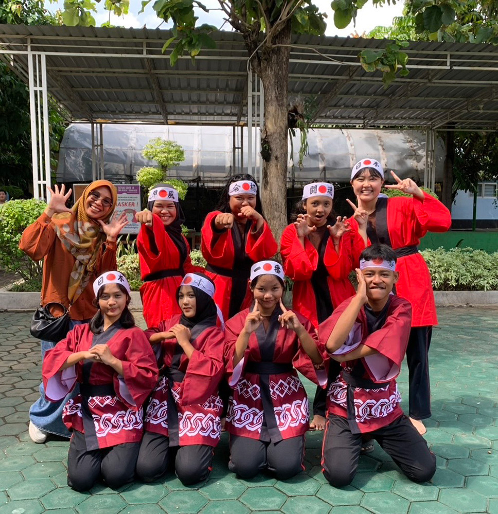 CP先生(現地の日本語の先生)がダンスクラブの担当だったことから、ダンスクラブの生徒に「ソーラン節」を紹介することになりました!生徒たちは、ジャワの踊りとは全く違う音楽や振り付け、声出しにとても興味津々で、終始笑顔で踊っていました!私も生徒も踊った翌日は、「Sakit!!(痛い)」と言いながら、筋肉痛と戦いました。