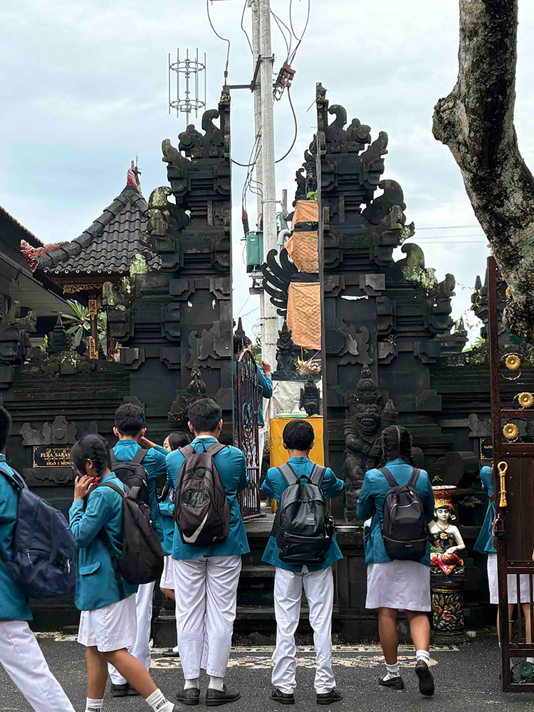 毎朝7時、代表の生徒が職員室の隅にあるマイクを使ってバリヒンドゥーのお祈りを唱えます。私は職員室の後ろの席から、じっとこの声に聞き入ってしまいます。お祈りは校内放送されていて、7時過ぎから授業が始まります。