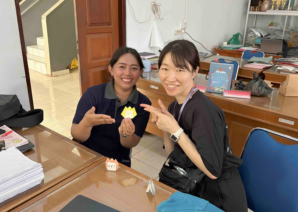休憩時間には、CP先生(現地の日本語の先生)と、文化や歴史等についてお互い聞いたり紹介したりします。とても楽しく知見の広がる時間です。