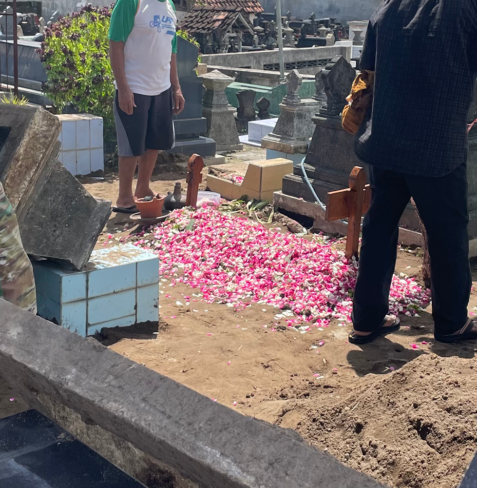 その数日後、たまたま通りかかった墓地でお葬式が行われていたので、許可を取って見学させてもらいました。「Silakan!(どうぞ!)」「Ayo!(さあ!)」と快く見せてもらえて、少しびっくり。
