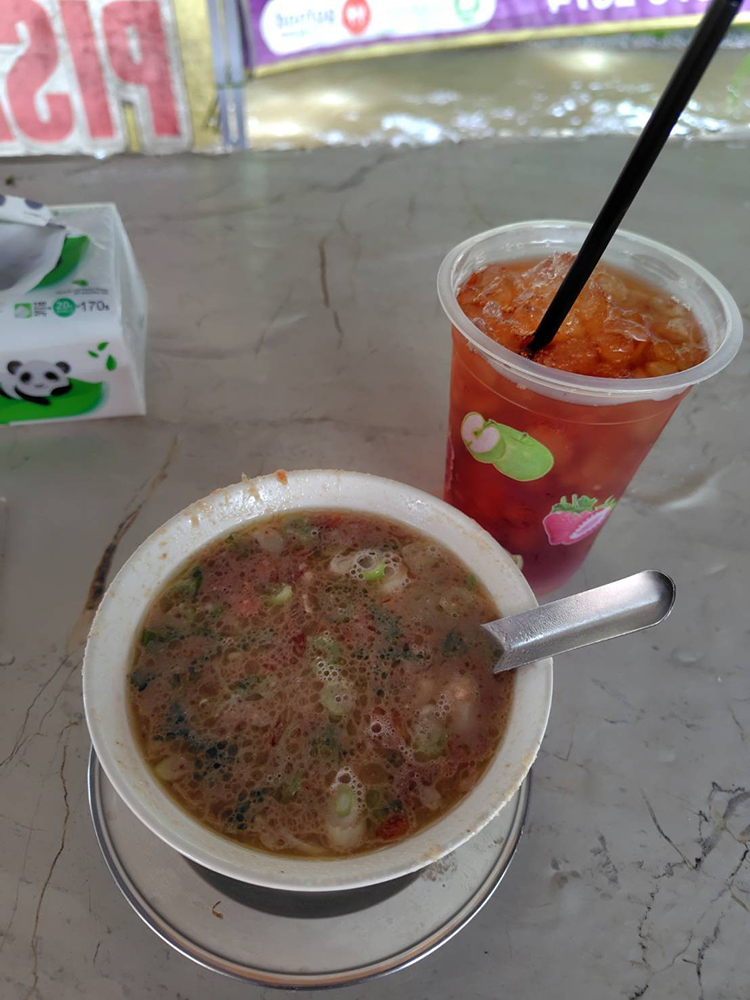 1月25日の日曜日、朝6時に起床しRindamへ向かいました。私はまず準備体操をして400mのコースを5周ほどジョギングしました。運動を終えた後は、Rindamの外に出て早速お目当てのjajan(買い食い)開始です!日本でいう屋台がズラッと並んでいてjajanを楽しむ人で賑わいます。食べ物だけでなく、服やアクセサリーを売るお店、ネイルサービスを行うお店もありました。私はcoto makassarという牛肉煮込みの濃厚スープに挑戦しました。運動後の疲れた身体にやさしく染みました。CFDに参加すると、さまざまな食べ物がおいしそうな見た目と香りで私を誘惑し、ついあれもこれもと食べてしまいそうになります。この日は誘惑に打ち勝ち、家に帰りました。