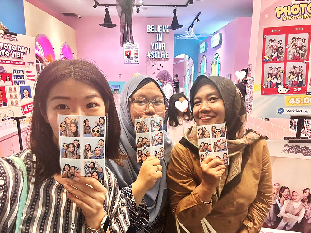 私の周りのインドネシアの方々は、自撮りが大好きな人がとても多いです。イベントのときはもちろん、何気なくおしゃべりしているときや通り掛け等にも「写真撮ろう!」と言ってもらえます。私自身も、楽しい時間を思い出として写真に残すことが大好きです!